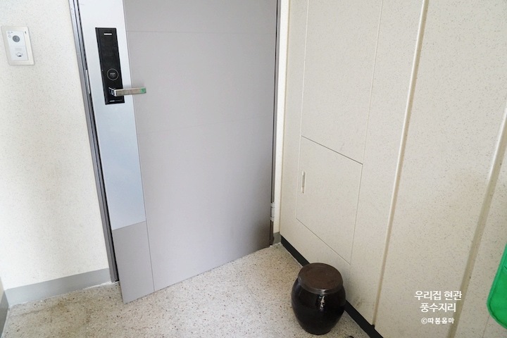 숨을 쉬는 항아리에 소금을 담아 이렇게 문 앞에 두면 좋다는 말에 벌써 이리 둔 지 2년이랍니다 ㅎㅎ