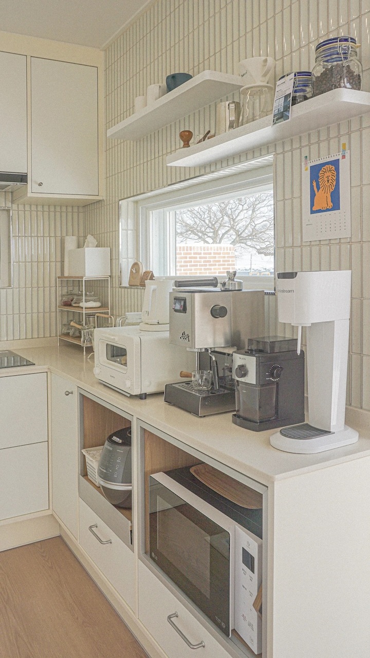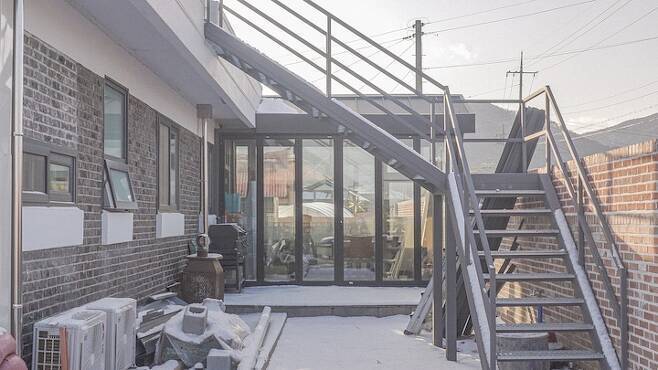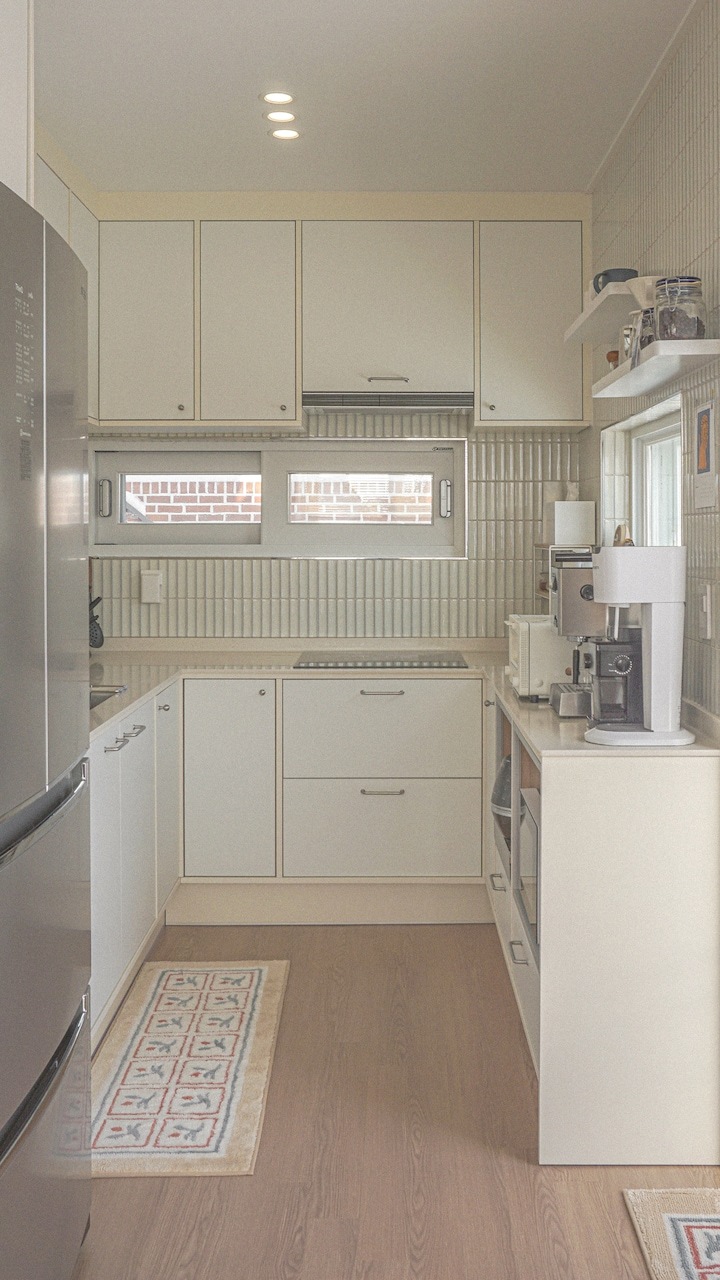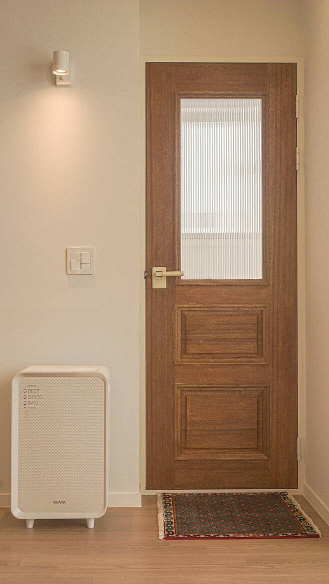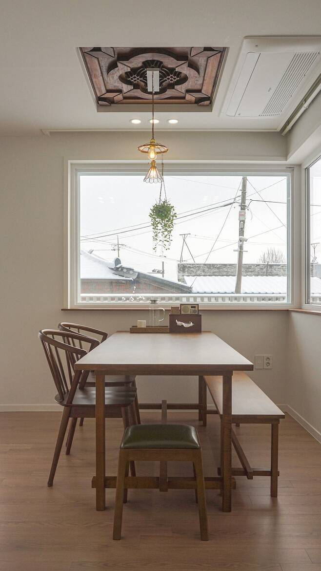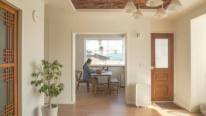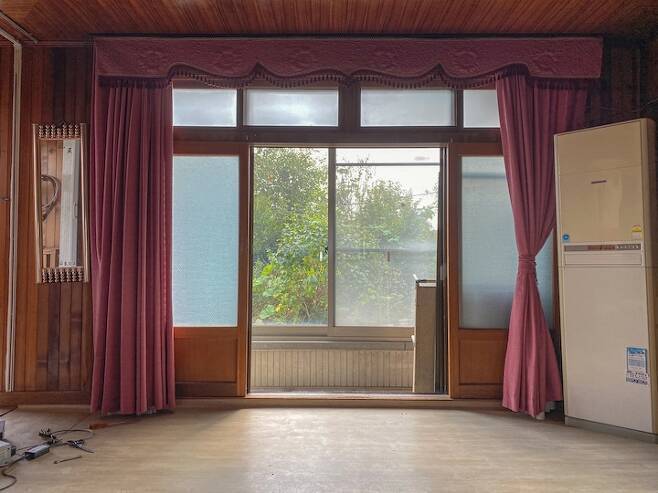 | [before] 우리 집은 정남향에 27평이고, 마당까지 하면 130평이에요. 1985년생 노후주택인 우리 집은 농사를 좋아하시던 집주인 할아버지의 밭과 정미소로 쓰이던 낡은 창고가 있는 넓은 마당, 집으로 들어가는 입구의 아치형 기둥과 세월이 만든 거실의 나무 천장이 인상 깊던 곳이에요. 이전에 살던 집은 집주인이 들어와 살겠다고 해서 쫓겨나 급하게 구한 곳이지만, 면 소재지라 편의시설도 있고(무려 편의점..!) 아빠 농장도 가까우며, 무엇보다 강아지들이 놀 수 있는 넓고 안전한 마당이 정말 마음에 들었어요. 공사는 반 셀프로 진행했어요. 디자인 및 자재 셀렉을 하면 인테리어 업체를 하시는 아빠의 지인분께서 시공기사님들을 연결해 주셨답니다. 그 외의 마당 공사나 나무 칠 같이 저희가 할 수 있는 부분은 최대한 직접 하면서 인건비를 조금이라도 덜고자 했어요. *도면 - before *도면 - after 거실 앞 베란다를 확장하고, 주방의 위치를 옮겨 옆에 다이닝룸을 만들기로 했어요. 작은 욕실을 더 좁아 보이게 한 다락방도 허물었어요. 주방과 다이닝룸의 창을 키우거나 새로 뚫어서 언제든 마당을 내다볼 수 있도록 설계했어요. 집을 고치면서 가장 중요하게 생각한 건 첫째도 단열, 둘째도 단열, 셋째도 단열이었어요. 시골집은 도시와 다르게 바람을 막아주는 건물이 없어서 외풍이 정말 심하답니다. 이번 이사를 마지막으로 부모님께서 정착하여 노후를 보낼 공간이라 돈을 많이 들여서라도 단열에 신경 쓰기로 했어요. 예상보다 집 상태는 훨씬 심각했어요. 단열이 전-혀 되어있지 않은 건물이어서 벽과 천장 전부 뜯어내 단열 작업을 했고, 보일러 배관도 부식돼서 바닥을 허물고 새로 교체했어요. 점점 공사를 진행하다 보니 변수들이 계속 나왔고, 예산은 진작에 초과했답니다.... 그래도 지금 안 하면 나중에 문제가 생길 게 분명해서 할 수 있는 모든 걸 했던 것 같아요. (=전부 다 새로 했다는 이야기) *자세한 내용은 각 위치별 비포 앤 애프터를 보여드리며 설명할게요:) [외관]after 노후주택을 산다는 건 집뿐만 아니라 세월도 함께 산다고 생각해요. 이젠 나오지 않는 마감재나 시간의 흔적들이 바로 이 집의 가치였고, 그걸 최대한 지키고 싶었어요. 가끔 지나가다 오래된 집에 흰색 새시가 끼워져 있는 걸 보면 이질감이 들더라고요. 그래서 외부 새시는 전부 차콜로 통일했어요. 그리고 외부 마감재가 다양한 편이라 도색은 오프 화이트로 심플하게 시공했어요. 마당은 아직 공사가 진행 중이라 많이 지저분해도 감안하고 봐주세요ㅠ.ㅠ 겨울이 끝나면 잔디를 깔 예정이랍니다 :) 중앙의 붉은 벽돌과 아치형 기둥은 이 집을 처음 봤을 때 가장 맘에 들었던 부분이었어요. 그런데 누수가 너무 심해서 기사님들이 기둥 전체를 감싸버리라고 하시는 거예요.. 그래서 엄마랑 함께 무조건 살려달라고 우겨서 전체 방수 작업 후 붉은 벽돌 부분만 스타코 마감을 해서 누수를 잡았어요. 완벽히 살리고 싶었지만 비올 때마다 불안에 떨고 싶지는 않기 때문에 적당 선에서 타협을 했답니다ㅜ_ㅜ 외부로 향하는 문은 전부 터닝 도어를 사용했어요! 가격은 비싸지만 외풍이 전.혀 들어오지 않아서 정말 좋더라고요. 유리는 모루 유리를 써서 개방감을 주면서 프라이버시는 보호할 수 있도록 했어요. 입구를 바꿨기 때문에 문 앞의 계단은 현무암 벽돌을 이용해 아빠가 직접 만드셨어요 [현관] before after 기존에 있던 아치 모양을 그대로 살리느라 목공 기사님들이 애쓰셨어요. 모든 새시는 외부-차콜, 내부-화이트 컬러로 시공했습니다! 신발장 자리는 원래 베란다로 이어진 곳이었는데, 가벽을 세우고 붙박이장을 넣어 신발장으로 사용 중이에요. 신발장 문 안쪽에 거울을 달아 외부는 깔끔하게 보이도록 했어요 옛날 집 치고 층고가 높아서 신발장을 분리했어요. 신발장 앞 층고는 2800, 중문 층고는 2700이랍니다. 현관은 집에 사용된 모든 손잡이는 을지로에 가서 직접 구매해왔어요. 현관 조명을 위해 정말 많은 곳을 발품 팔았지만 결국 인터넷에서 산 조명을 선택했어요. 과하지 않고 무엇보다 저렴하다는 점이 최고의 장점입니다ㅎㅎ(무려 35,000원..!) 전혀 저렴해 보이지 않아서 강력 추천입니다:) 현관에 들어오자마자 '오~신경 좀 썼는데?' 이런 느낌이 들어서 좋아요. 중문 앞에 놓은 페르시안 발 매트와도 잘 어울려요. 타일 줄눈을 화이트로 하면 금방 더러워지고 너무 튈 것 같아서 바닐라 컬러로 시공했어요. [거실]before 색은 집안의 다른 나무들과 톤을 맞추기 위해 직접 오일 스테인으로 칠했어요! 문틀까지 원목으로 하면 틀어짐이 있다고 해서 문틀은 일반 문틀을 사용했어요. 손잡이는 을지로에서 구매했습니다. 저희 엄마는 소파에 드러누워 있는 걸 보기 싫어하셔서 거실에 소파가 없어요. 그 대신 통창 앞에 2인 테이블을 두고 그 위에 펜던트 등을 달아줬어요. 테이블과 의자는 당근마켓에서 구매했습니다! [다이닝룸] before 창밖을 바라보는 걸 좋아하는 고양이를 위해 창문 앞에 목재로 돌출창대를 만들었어요. 마당에서 일을 하고 있으면 여기에 앉아서 저희를 지켜보는 고양이와 눈이 마주쳐요. 이것도 전부 같은 오
