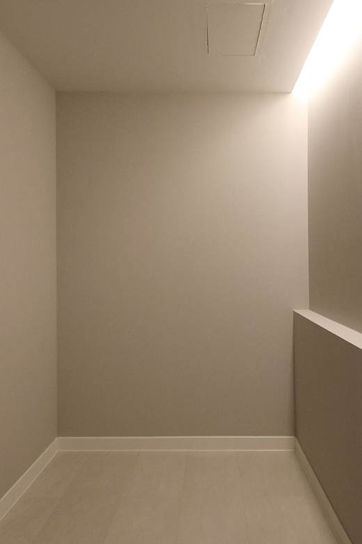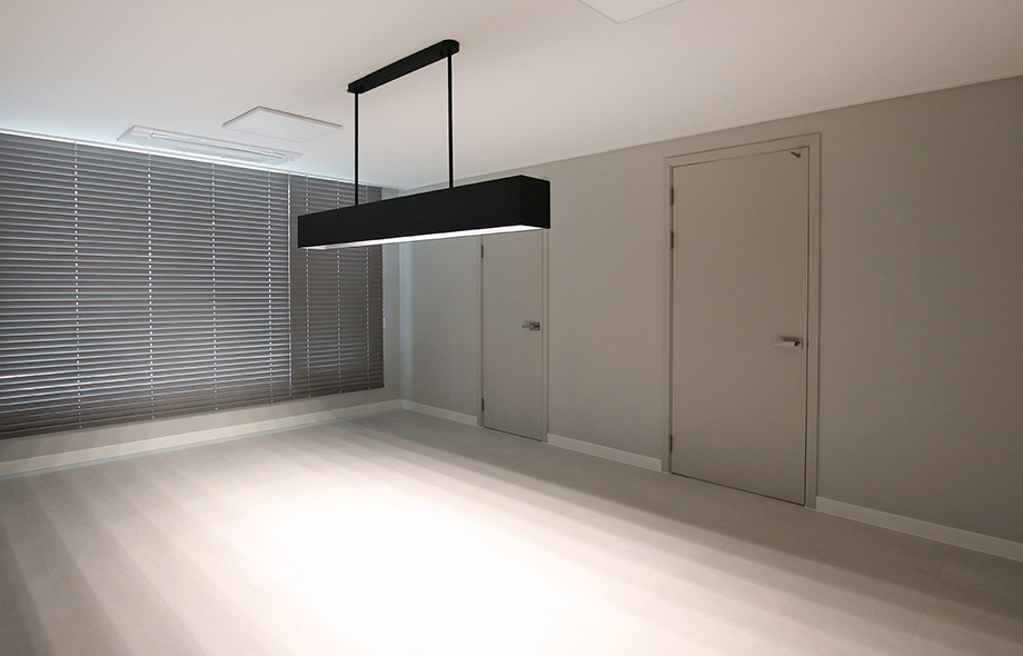 명상과 요가를 할 수 있는 공간으로 사용하고 싶다는 클라이언트의 니즈를 반영해, 공간에서 집중할 수 있도록 메인조명의 서브로 간접조명을 넣어 조도를 조절 할 수 있게 했습니다. 또한 벽부분에 단을 두어 간단한 도구를 거치할 수 있도록 세심하게 연출해 공간의 효율성을 높였습니다.