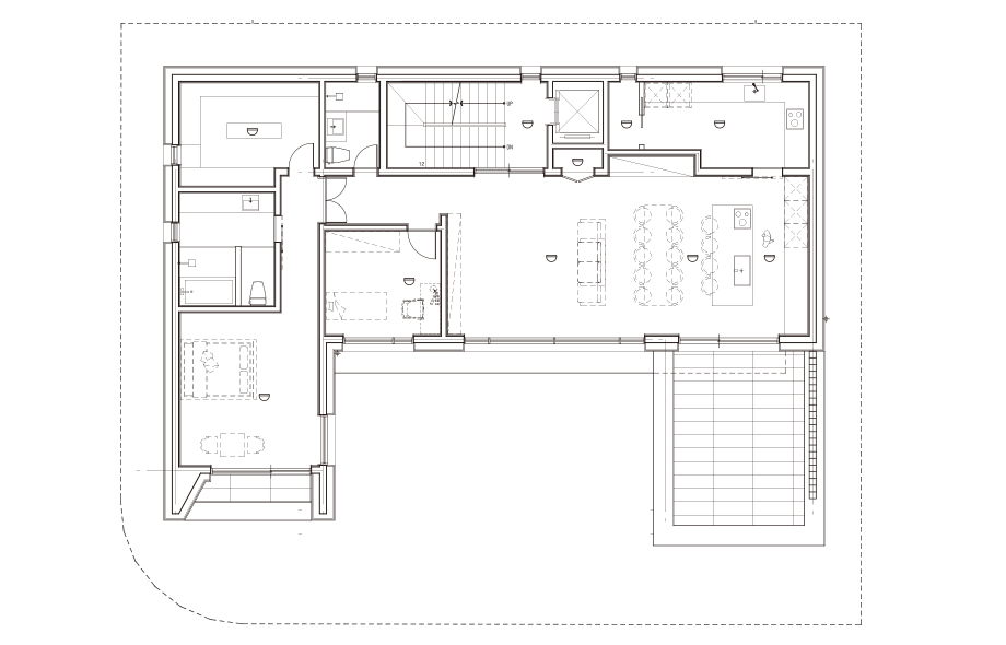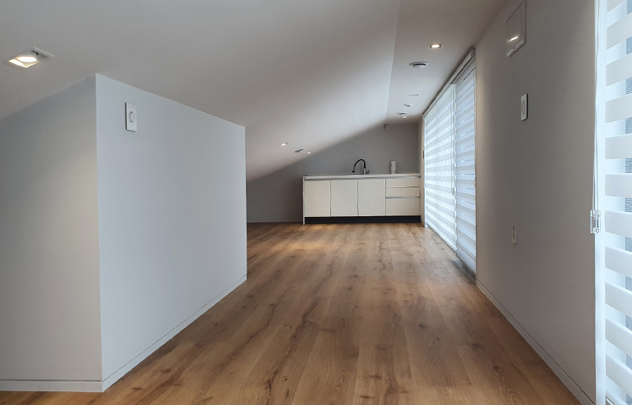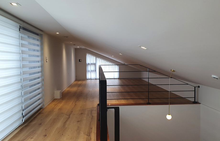 천장이 사선으로 되어있어 매력적인 3층은 최대한 심플하게 연출하여 다양한 용도로 사용할 수 있도록 했습니다.