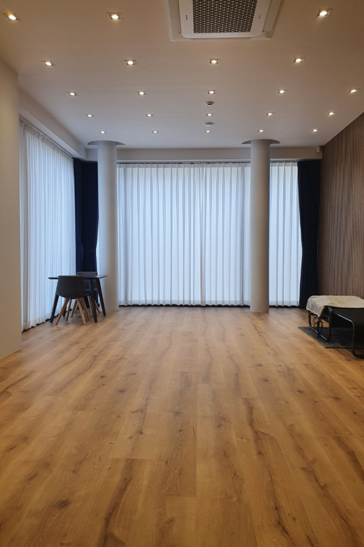 ※ 하이브리드마루란? : 열과 수분에 의한 변형을 최소화하는 클릭시스템과 표면강도를 10배 이상 강화시킨 첨단오버레이 기술을 적용하고 특수 프레스공법으로 100% 방수 기능을 구현한 친환경 마루