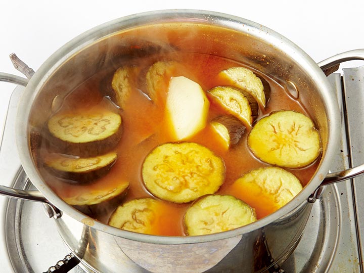 가지의 포근한 식감이 얼큰한 국물, 부드럽게 익은 감자와