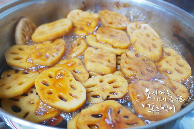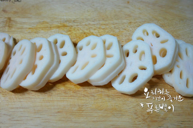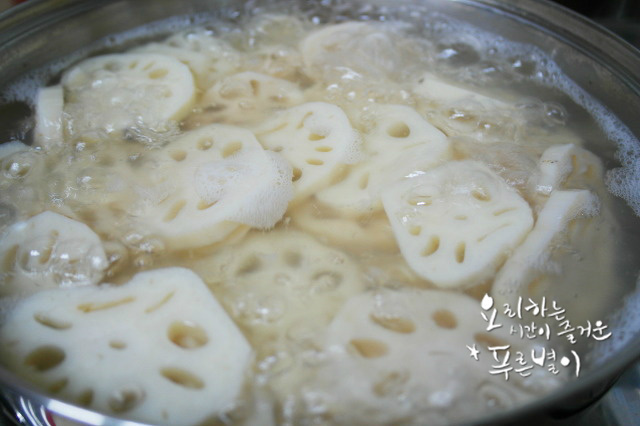 연근에서 나오는 전분과 떫은맛을 우려내어 줍니다