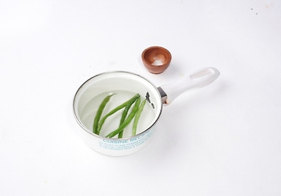 2. 소금을 넣은 끓는 물에 그린피스를 데친다.