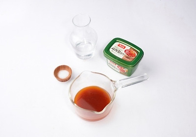 2. 진간장 100cc, 맛술 100cc, 청주 100cc, 자일로스 설탕 50cc, 물 700cc를 섞고