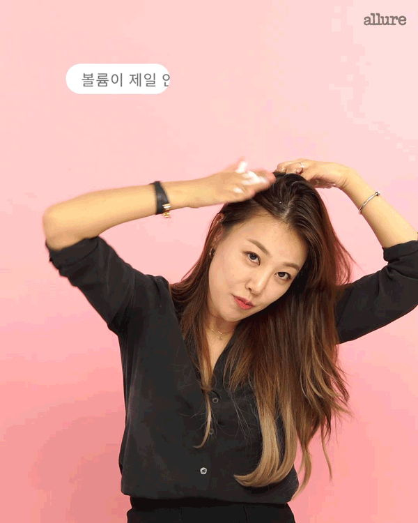 1) 손을 갈고리 모양으로 만든 후 앞머리를 살짝 쥔다