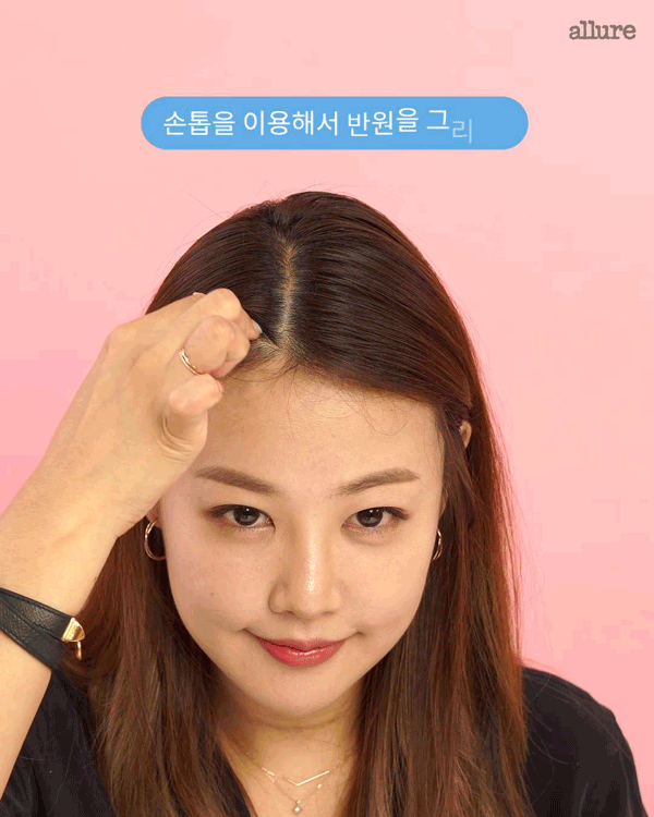 1) 손가락으로 커다란 반원을 그려 머리를 한쪽으로 넘긴다.