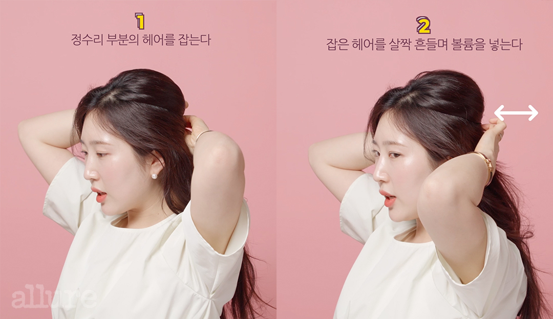 실핀 1~2개로 이렇게 해두면 정수리와 뒤통수 볼륨을 더 살릴 수 있다? 머리를 하나로 묶기 전 실핀으로 정수리 부분의 헤어의 볼륨을 살려 고정시켜보세요. 정수리와 뒤통수 볼륨이 살아 머리 숱이 풍성해보인답니다.