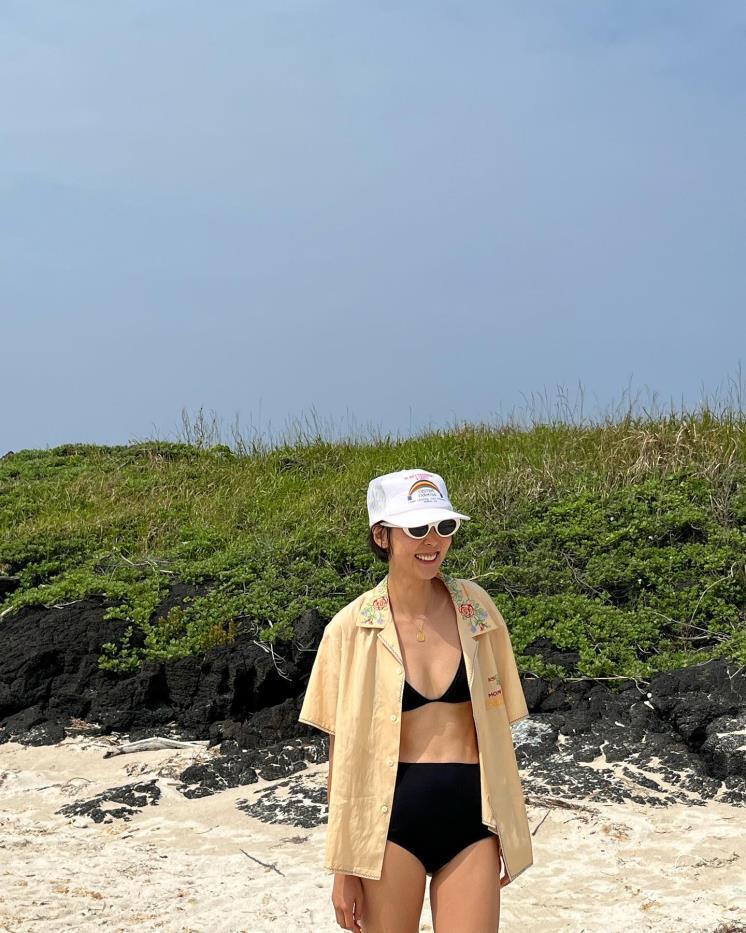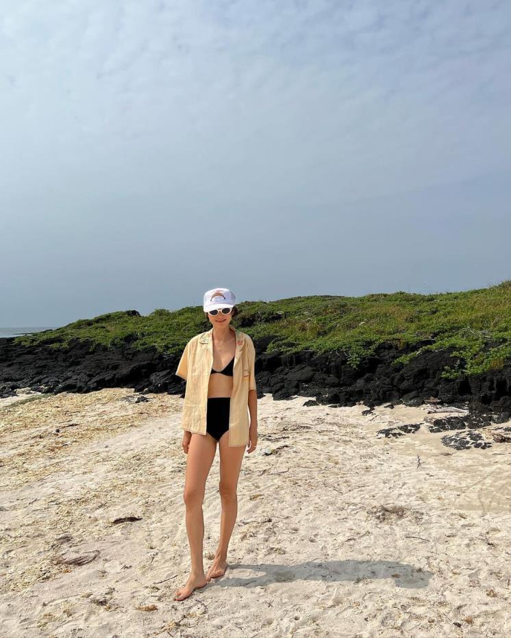 가장 손쉬운 수영복 스타일링 방법은 바로 셔츠를 덧대 입는 것! 김나영은 심플한 블랙 비키니에 귀여운 하와이안 셔츠를 레이어드 했다. 물속에 있다가 나왔을 때 추위를 보완해주기도 하고 피부가 드러나는 부분을 가려줘 수영복 초수들에게 추천하는 스타일링 팁!