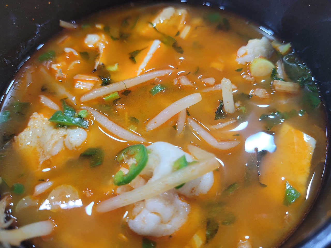 다시마 육수물에 묵은지 무우 콩나믈 장어톡톡 잘라 고추랑 대파넣어 마무리합니다~