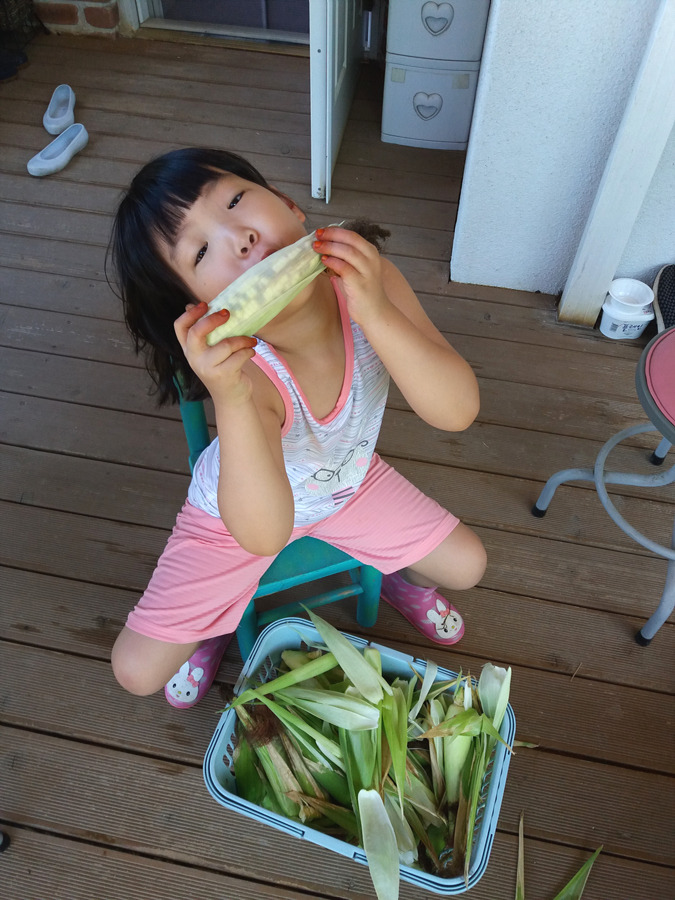 할미는 손녀가 오면 준다고 수박과 옥수수에 정성을 들이고