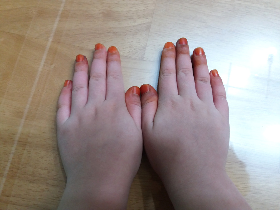 이틀이 지나니 봉숭아물이 제대로 곱게 잘 들었습니다.