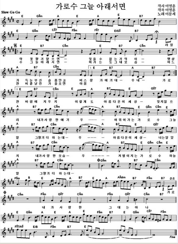 연주곡명 : 가로수그늘아래서면-이문세