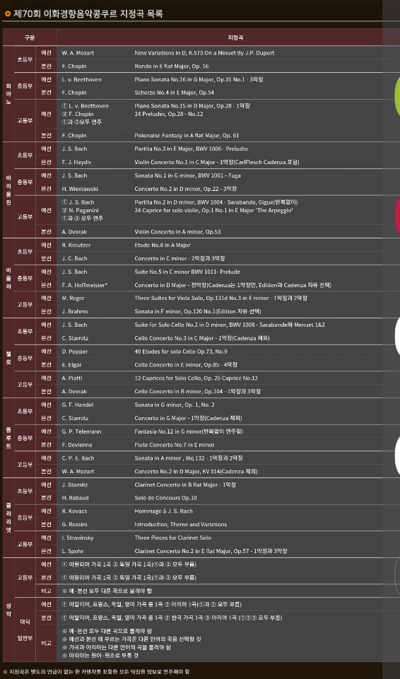 내년 2021년 제 70회 이화경향 콩쿠르 모집요강이 발표가 났습니다.