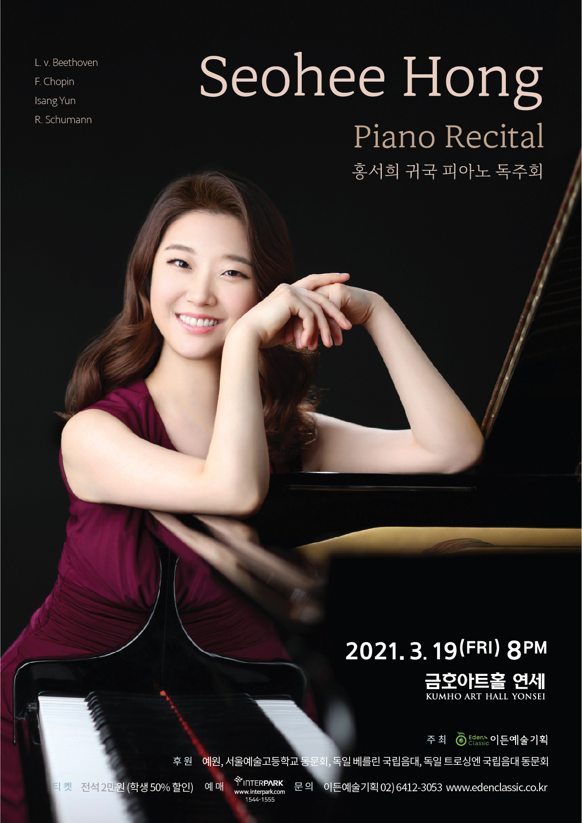 따뜻한 감성과 진정성 있는 연주로 청중에게 다가가는 피아니스트 홍서희는 예원학교와 서울예술고등학교 졸업 이후 도독하여 베를린 국립음대(Universität der Künste Berlin)에서 Diplom 및 Master 졸업, 트로싱엔 국립음대(Staatlichen Hochschule für Musik Trossingen)에서 최고연주자과정(Konzertexamen)을 졸업하였다.