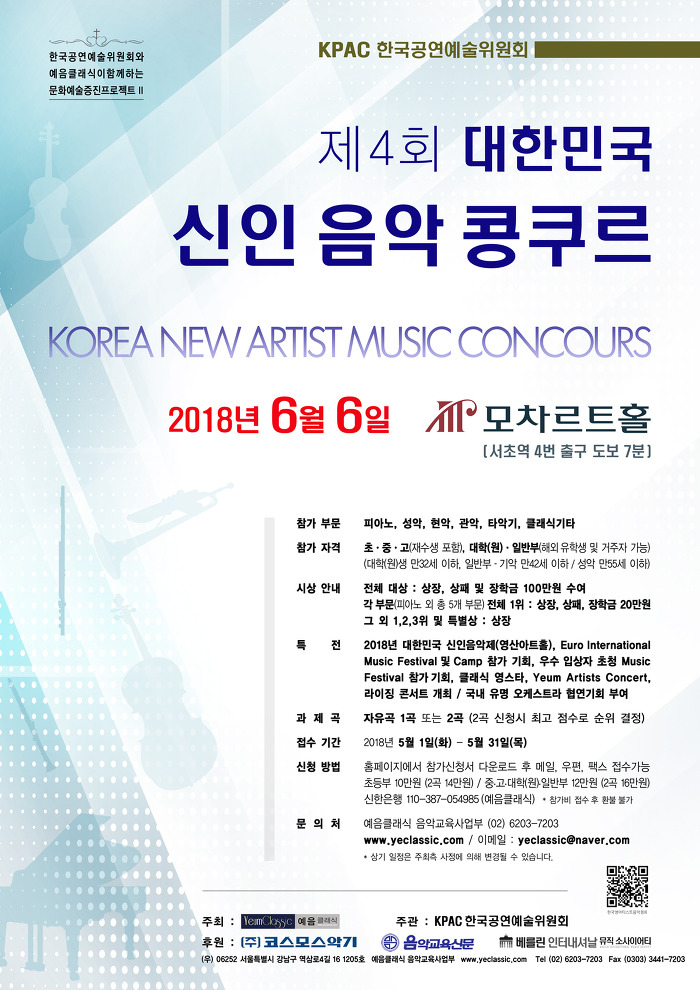 2018년 대한민국 신인음악제(영산아트홀), Euro International Music Festival 및 Camp 참가 기회,