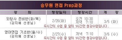 4. new! 3월 화/목 외항사 준비반 오전반은 개설되지 않습니다.