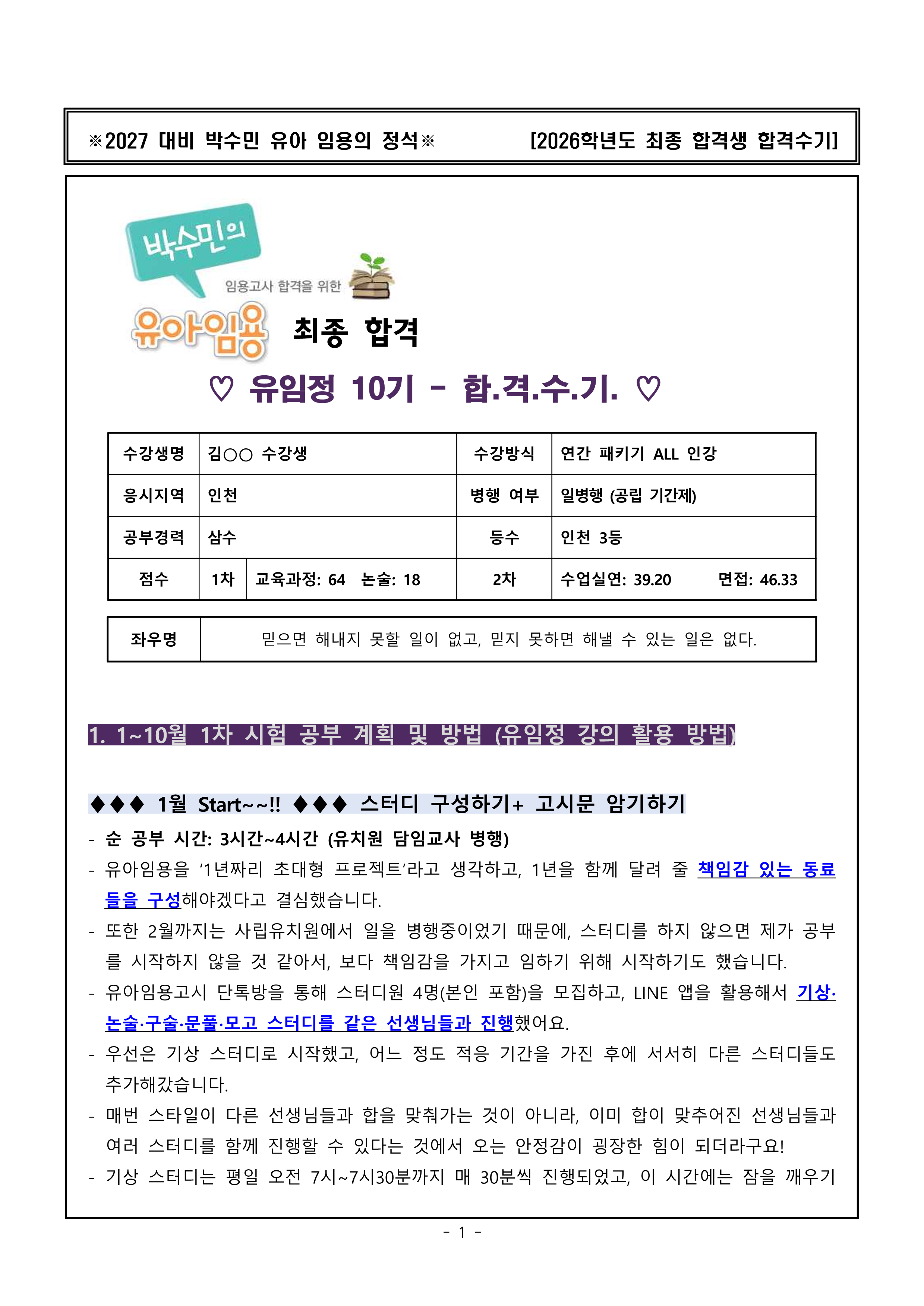 늘 합격수기를 보는 사람이었는데,