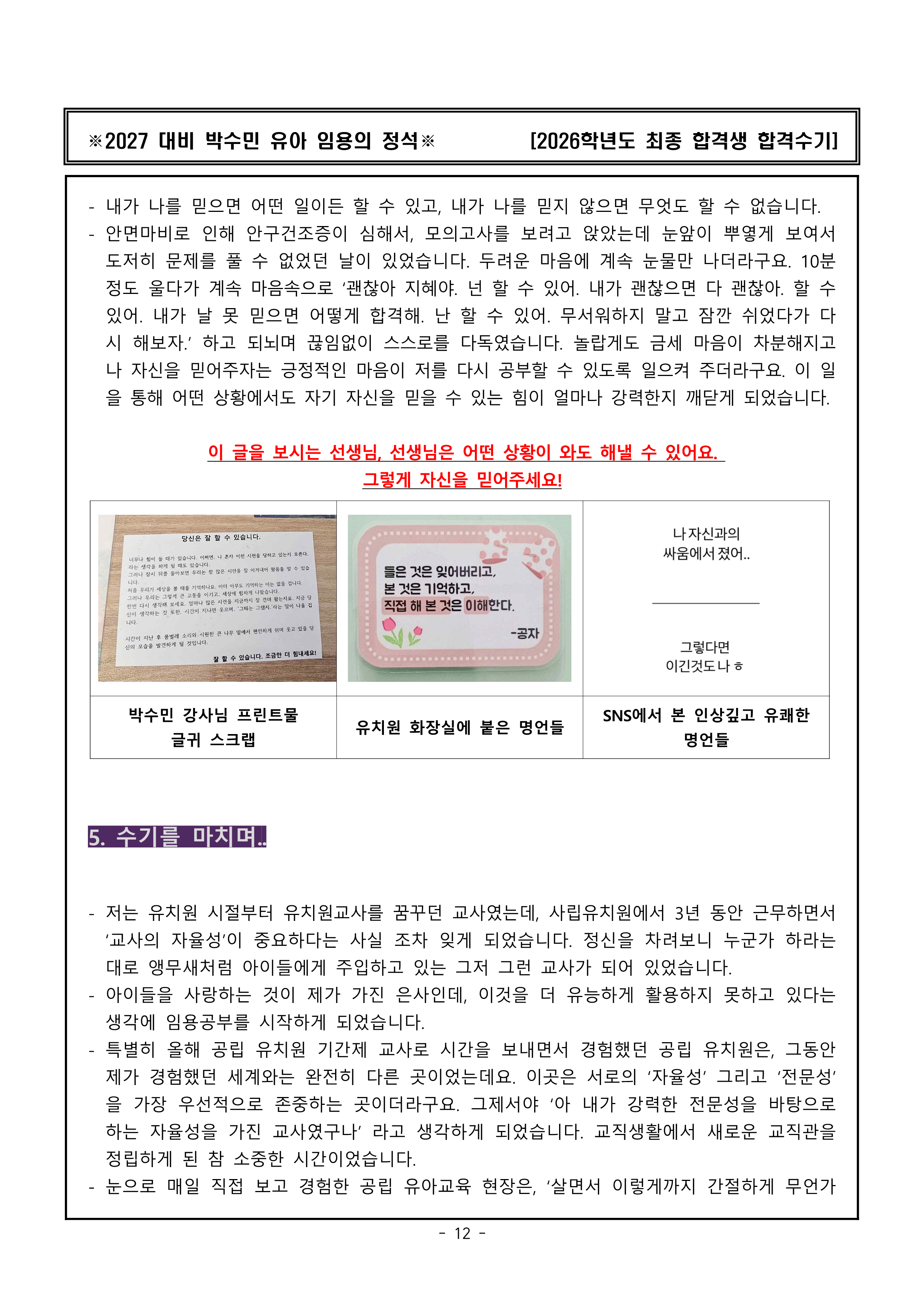 나는 할 수 있다! 나의 날이 왔다! 2027 유아임용 화이팅 💙
