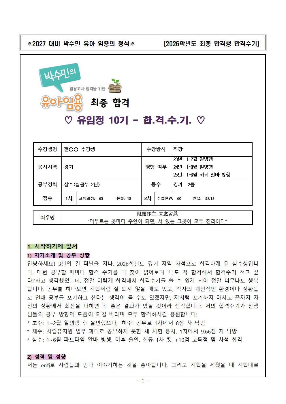 μ μ ν©κ²©μκΈ°κ° μ μλλ€μ κ³΅λΆ λ°©ν₯μ μΈμ°λ λ° λ§μ λμμ΄ λμ