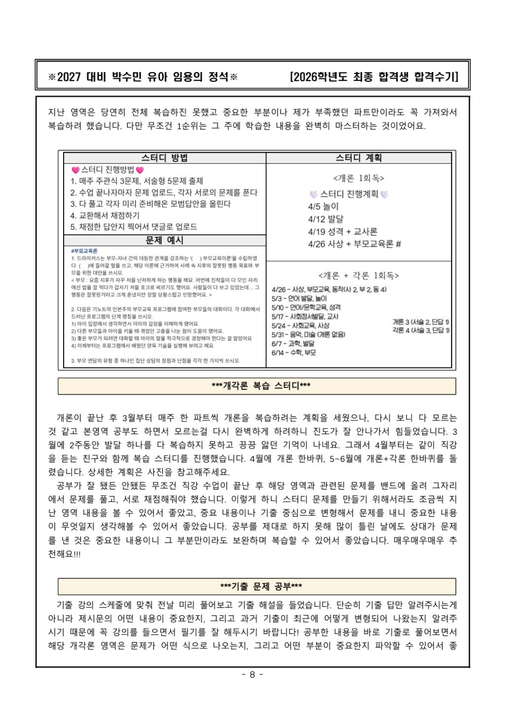 그리고 암기 속도 자체도 뒤로 갈수록 빨라지니 걱정마세요 ㅎㅎ 저는 예술경험 할때쯤 "어라? 왜이렇게 잘 외워지지?" 하는 생각이 들었던 기억이 납니다 선생님도 할 수 있으실 거예요!!