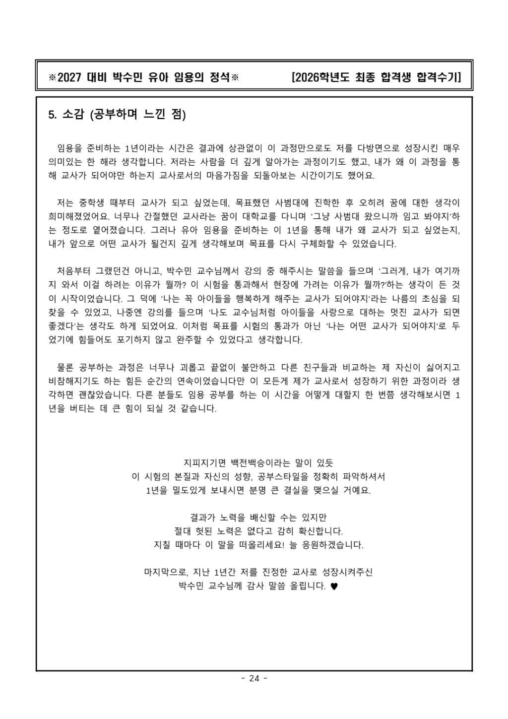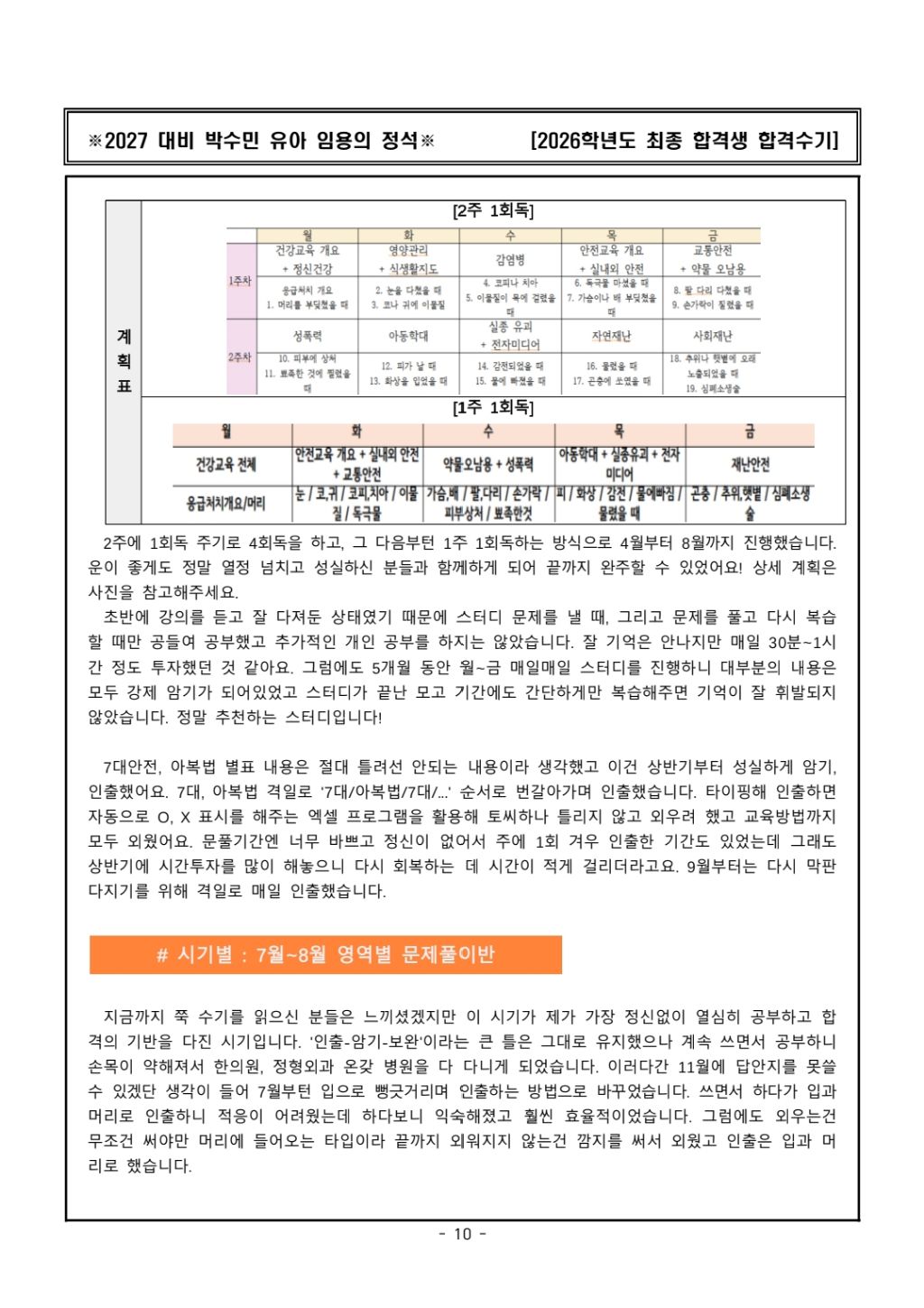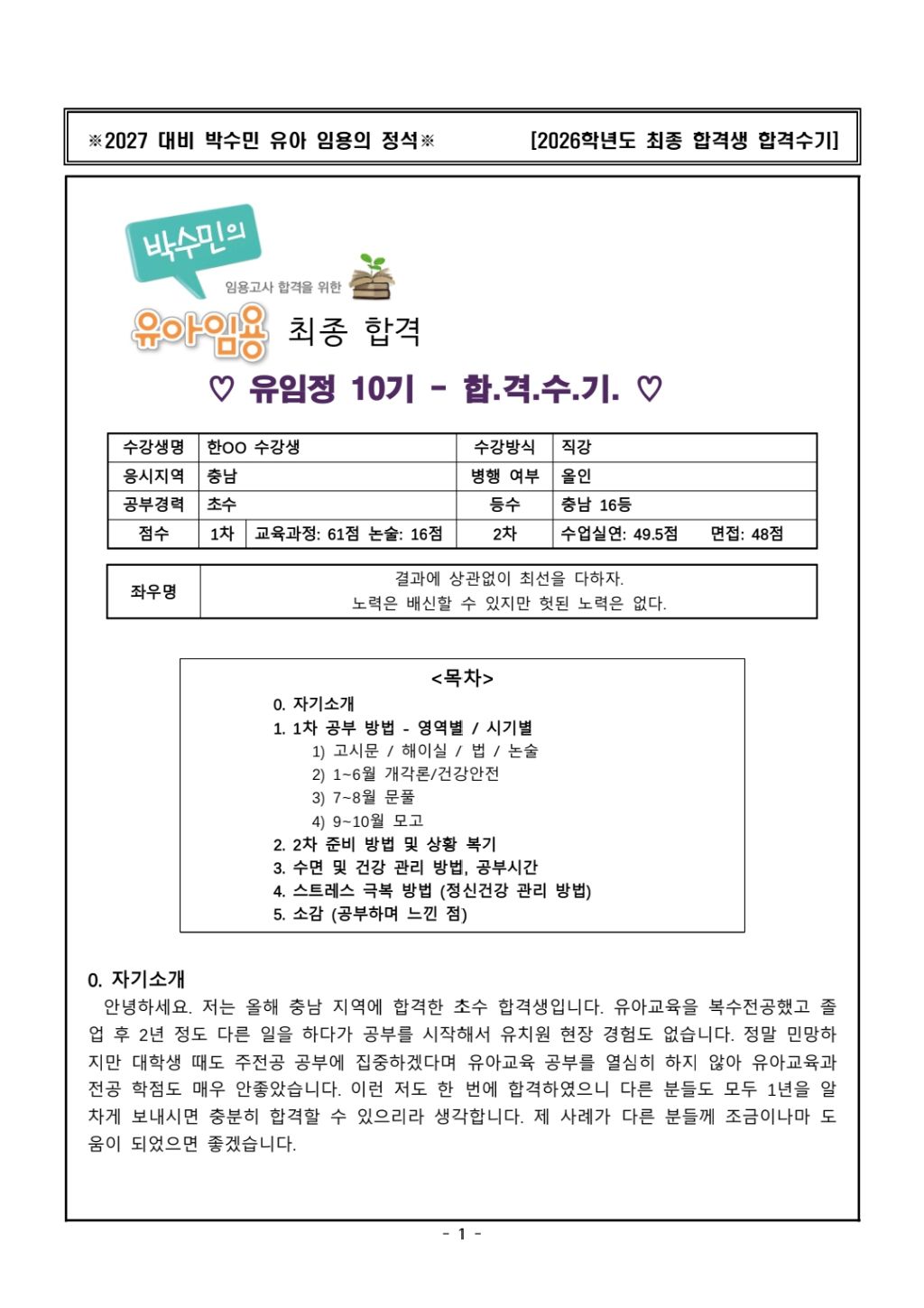 안녕하세요. 올해 충남지역에 초수로 합격한 수강생입니다.