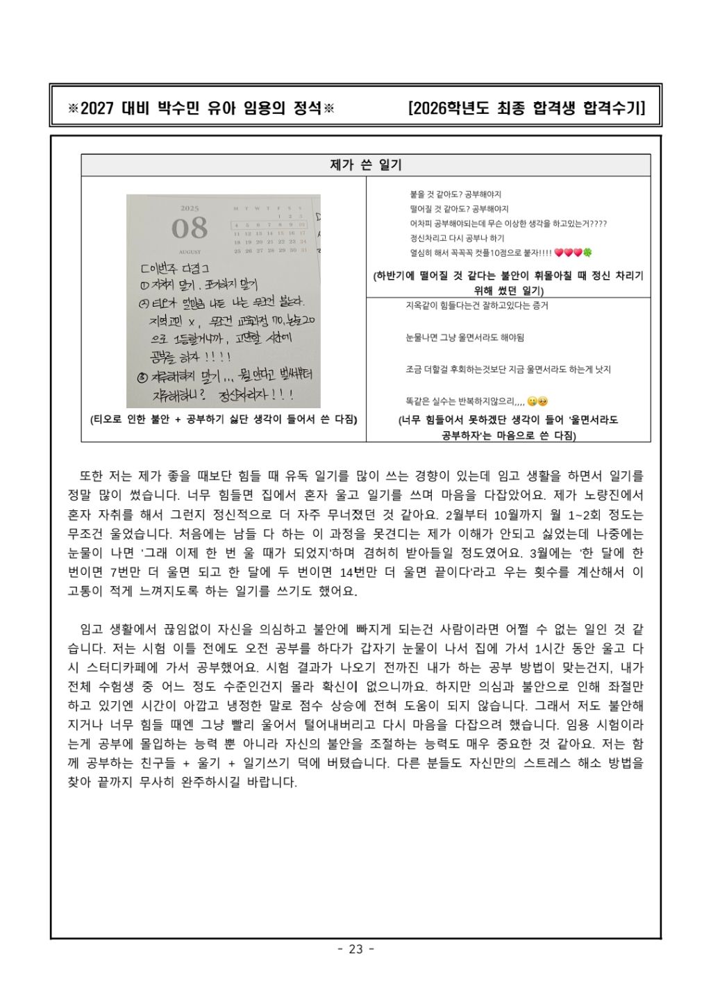 공부하는 1년 내내 꼭 합격해서 수기를 쓰고싶다고 생각해왔는데 이렇게 제 사례를 공유하게 되어 영광입니다.