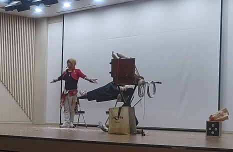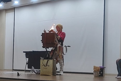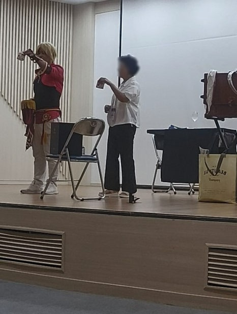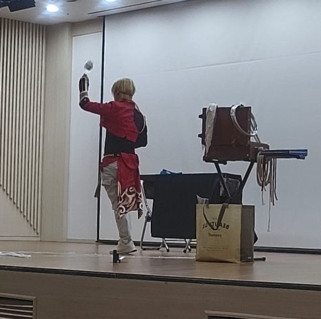 의자 공중부양 마술을 진행 했습니다. 관객들이 손에 땀을 쥐었다는 후문이 들렸어요.