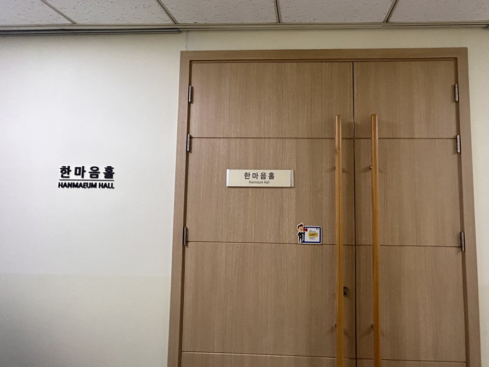 삼성전아의 오픈오피스 행사가 열릴 한마음홀입니다. 목재가 주는 시원함과 깔끔하고 단정한 공연장입니다.