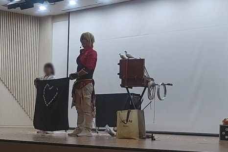 대구 마술공연 연합의 신진욱 마술사는 태양처럼 뜨겁게 타오르는 불판 위에서 마법처럼 생명이 태어나는 비둘기 마술을 선보입니다.