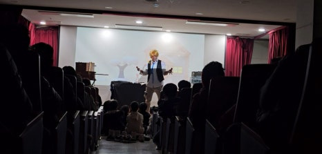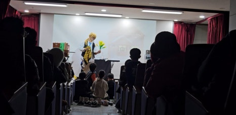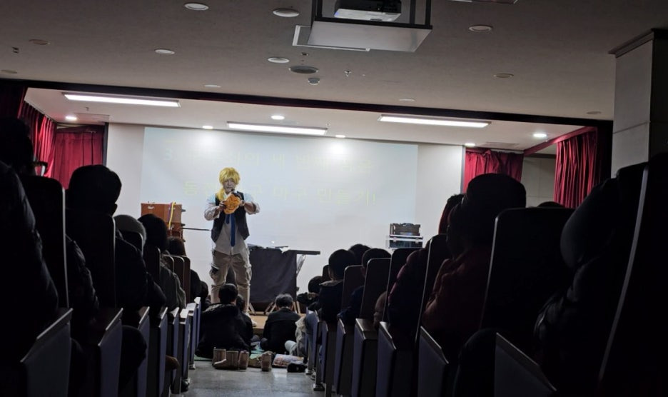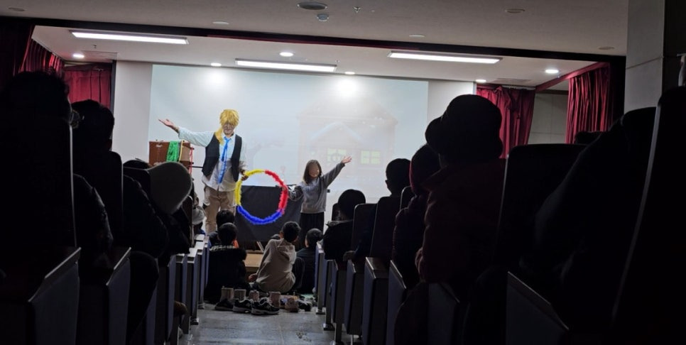 정답을 맞힌 친구들에게는 선물을 나누어 주며 재미있고 의미 있게 공연을 시작했습니다 🎁✨