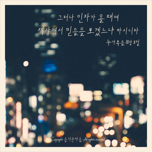 누가복음 18장 8절 "내가 너희에게 이르노니 속히 그 원한을 풀어 주시리라 그러나 인자가 올 때에 세상에서 믿음을 보겠느냐 하시니라 "