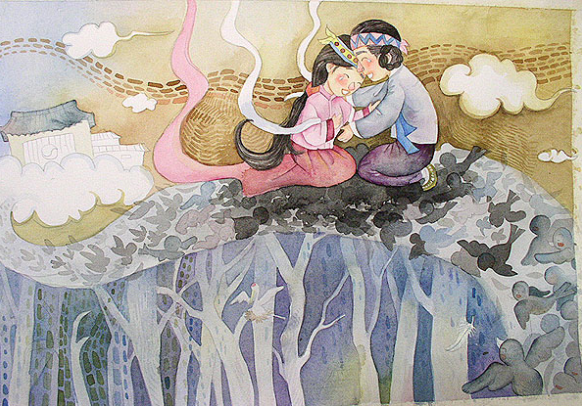 [견우 직녀 이야기에서 변형된 이야기도 있는데, 우랑 이야기과 동영 이야기이다.]