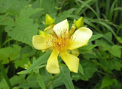 [꽃잎이 물레처럼 바람개비 방향으로 돌려났다고 붙여진 물레나물 꽃]