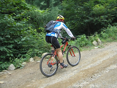 아니나 다를까 내려가는 길에 산악 바이크 일행이 땀을 흘리며 올라온다