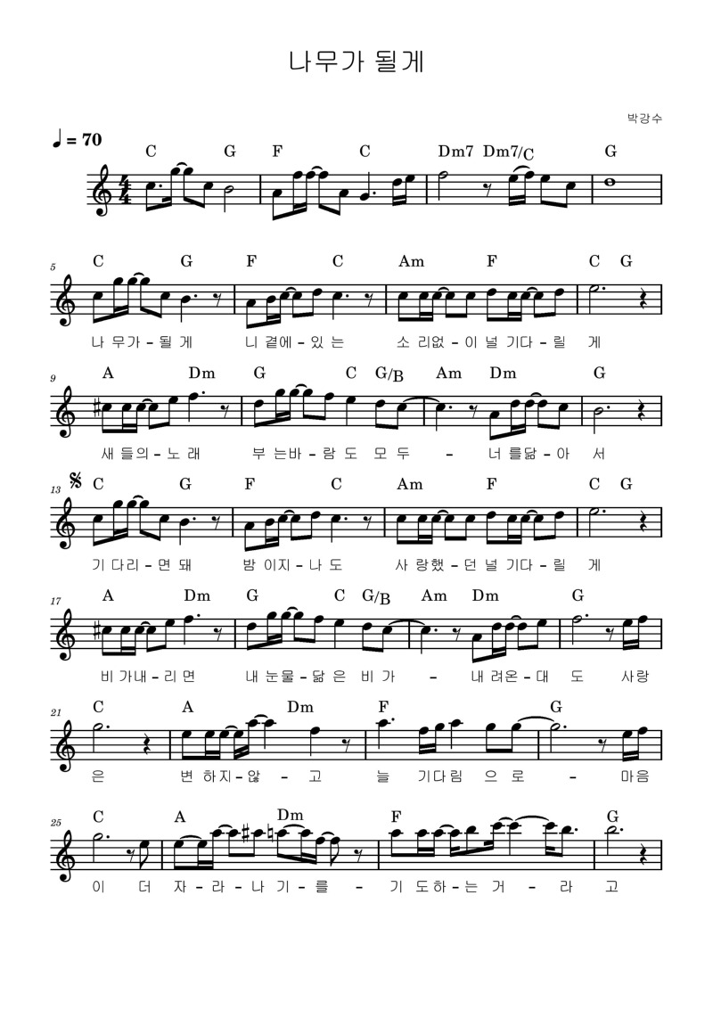 작성자뜬금이 작성시간 24.11.29 "나무가될게"도 거의 시 한편을 노래하는듯한 명곡이죠...강수님은 어텋게 이런곡을 만들었을까요?