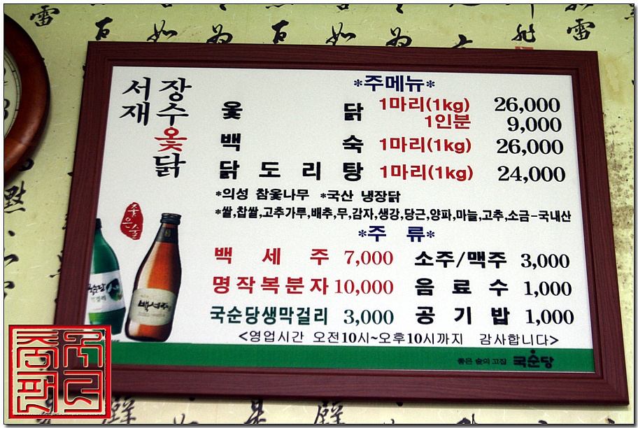 닭은 메뉴판에 보시다시피..