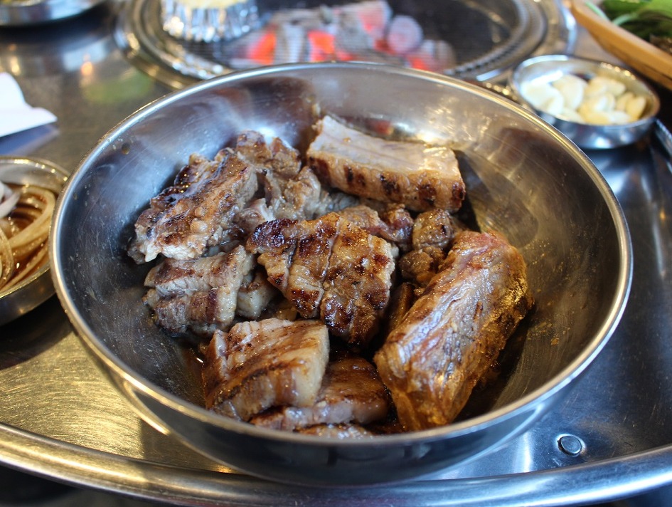 신천역부근 국내산 1등급 뼈삼겹 부위로