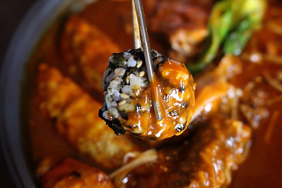 튀김도 자작한 국물소스에 듬뿍 찍어 드시면