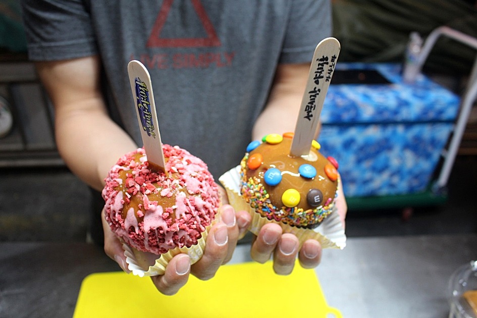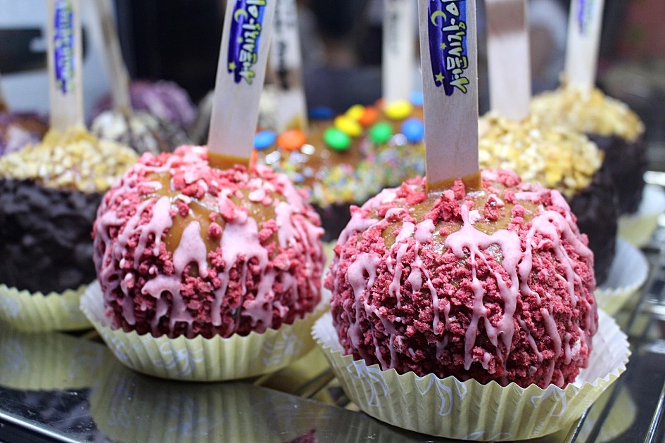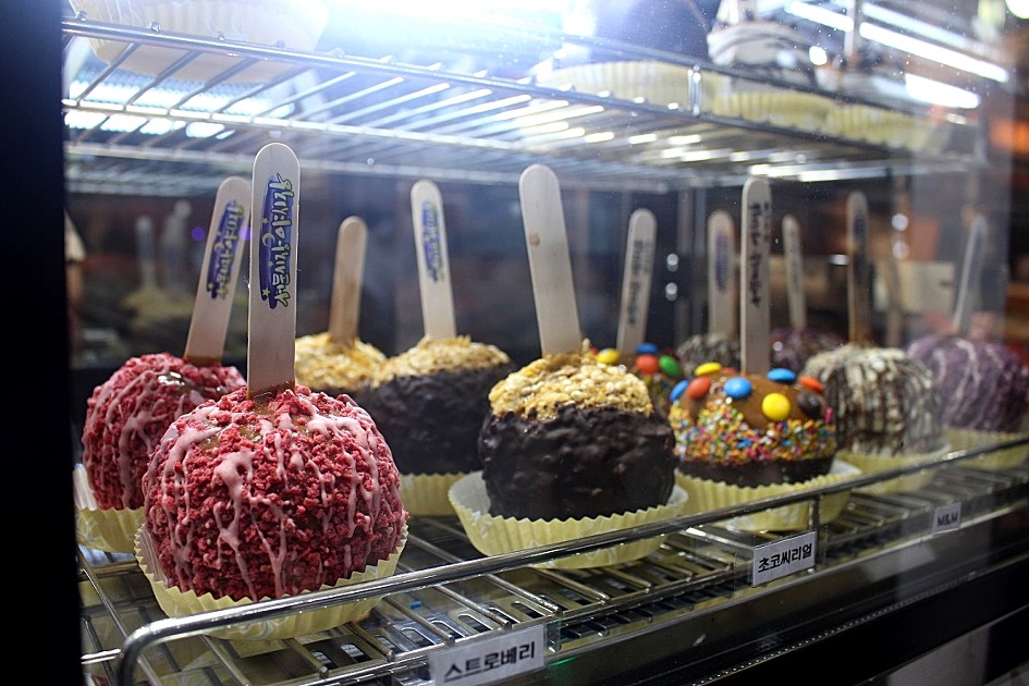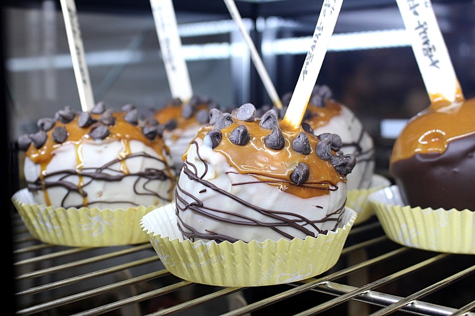 여러 종류의 카라멜사과도 담아봅니다.