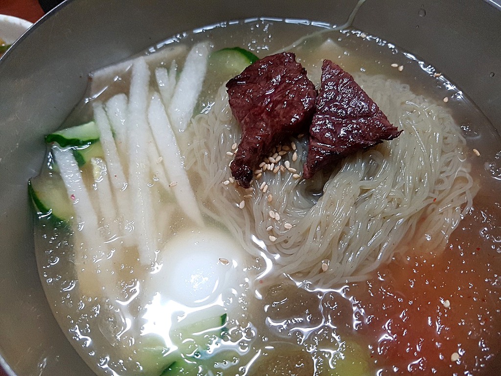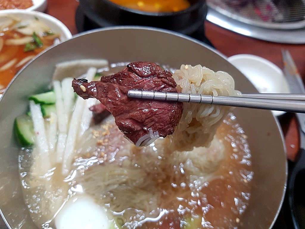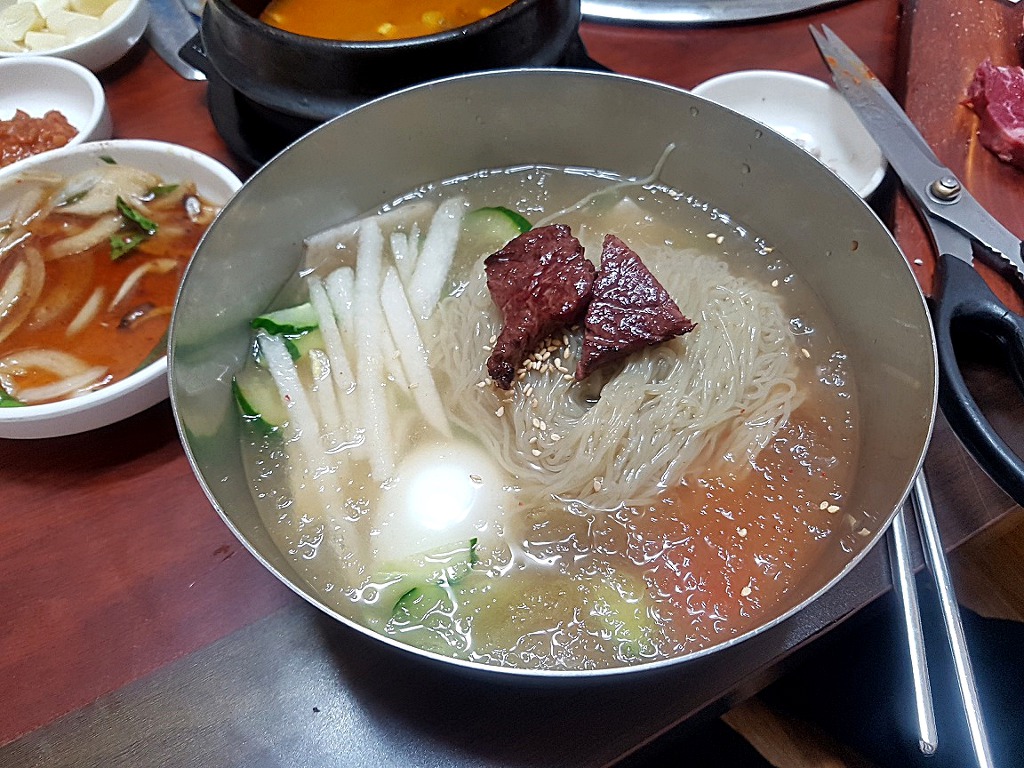 고기먹고 살얼음 올려진 시원한 냉면~