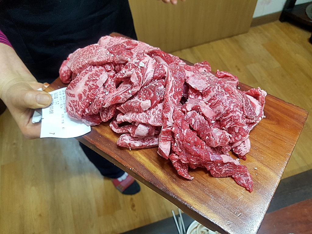 즉석에서 썰어 준비해 주시는 #한우갈비살