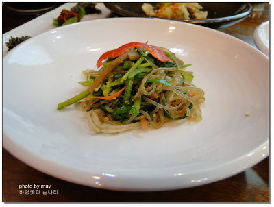인삼소스로 만든 새싹샐러드와 잡채..