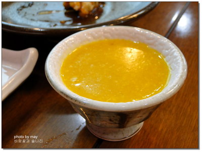 단호박죽과 묵무침...