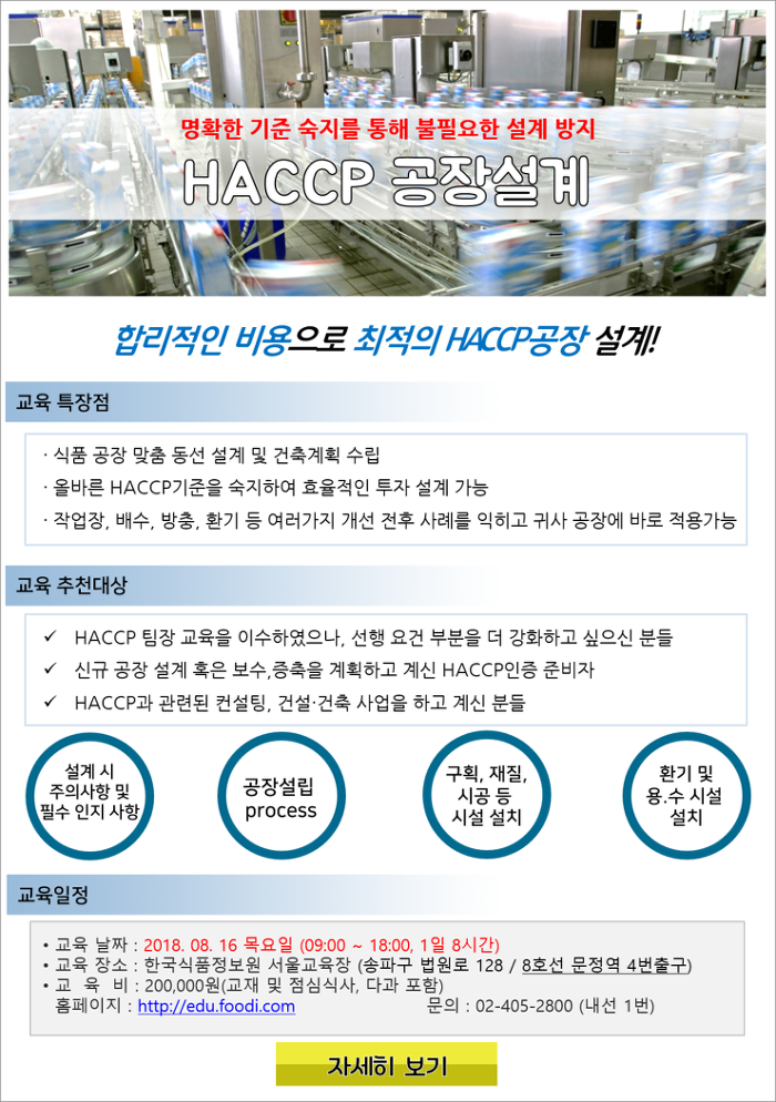 · 올바른 HACCP기준을 숙지하여 효율적인 투자 설계 가능