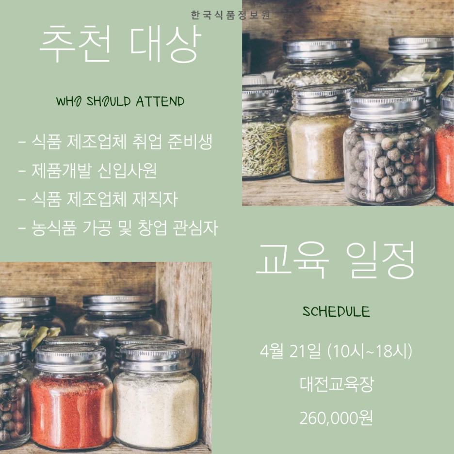 안녕하세요. 한국식품정보원 대전교육장입니다.