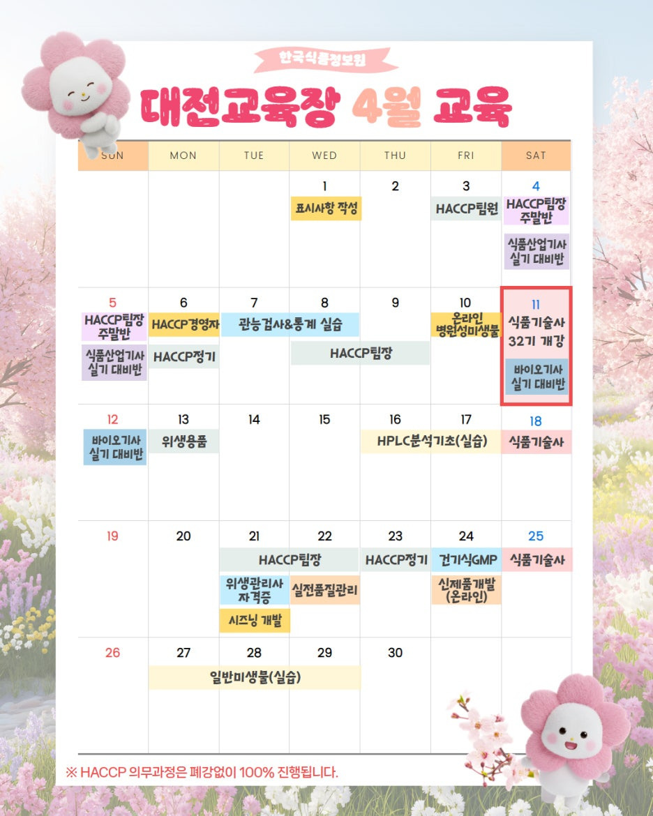 또한 식품위생관리사 자격증 취득과정도 개설됩니다.