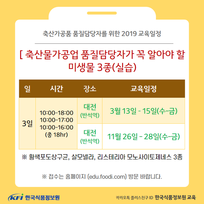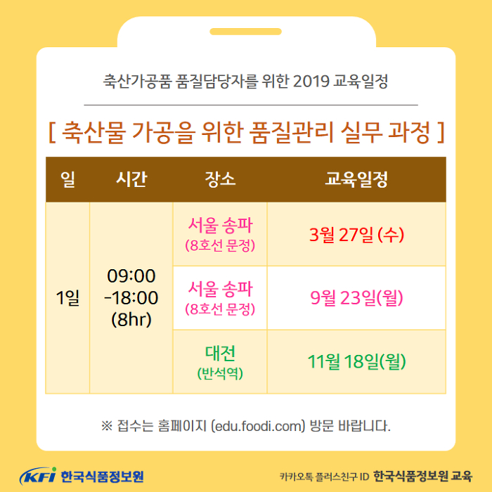 [◆진행중◆][KFI] 교육안내 : 식육가공품/알가공품/유가공품 등 축산유래제품의 품질관리 담당자를 위한 KFI 추천 직무교육 안내입니다.(수정)