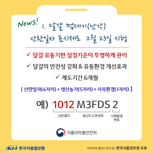 지난 2월 21일 식약처는 23일부터 달걀껍데기 산란일자 표시제도를 시행한다고 알렸습니다.