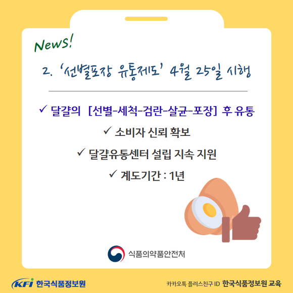 달걀 안전성 강화와 유통환경 개선효과가 있을 것으로 발표했습니다.
